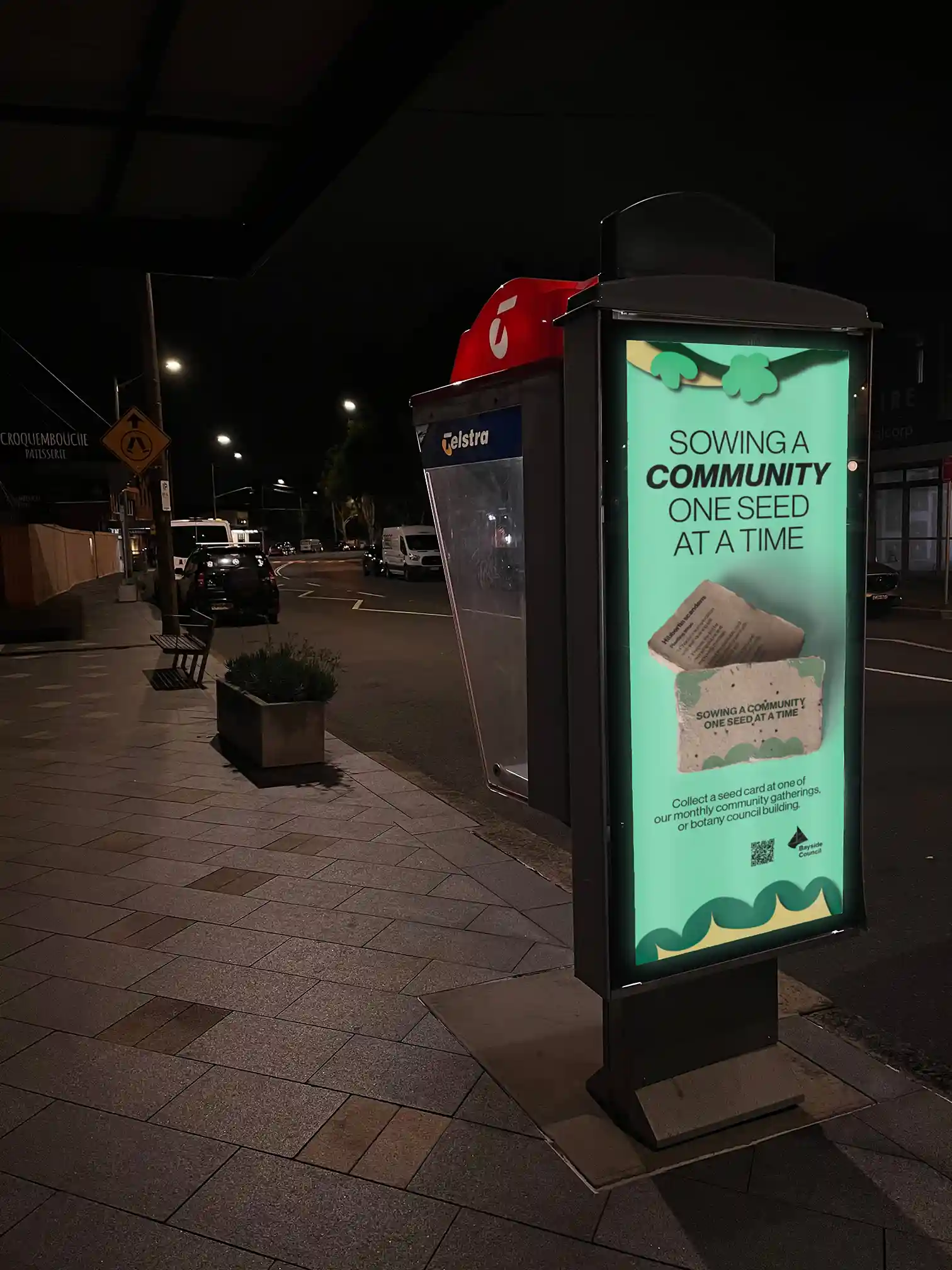 The ‘Bring the Botany back to Botany’ campaign focuses on creating a meaningful and sustainable connection between the community and its native environment. Central to the campaign are eco-friendly paper cards embedded with seeds from plants indigenous to the lands of the Gadigal and Bidjigal clans of the Eora Nation. Each card includes planting instructions, printed with eco-conscious ink, that encourage community members to “Bring the Botany Back to Botany” by planting the seeds right in their own gardens. To deepen this connection, the campaign also hosts gardening workshops and community gatherings where residents can learn about the land they live on and discover its natural offerings. This initiative educates residents about the unique botanical heritage of the area while inviting them to make a positive impact on the local ecosystem—sowing a community one seed at a time.